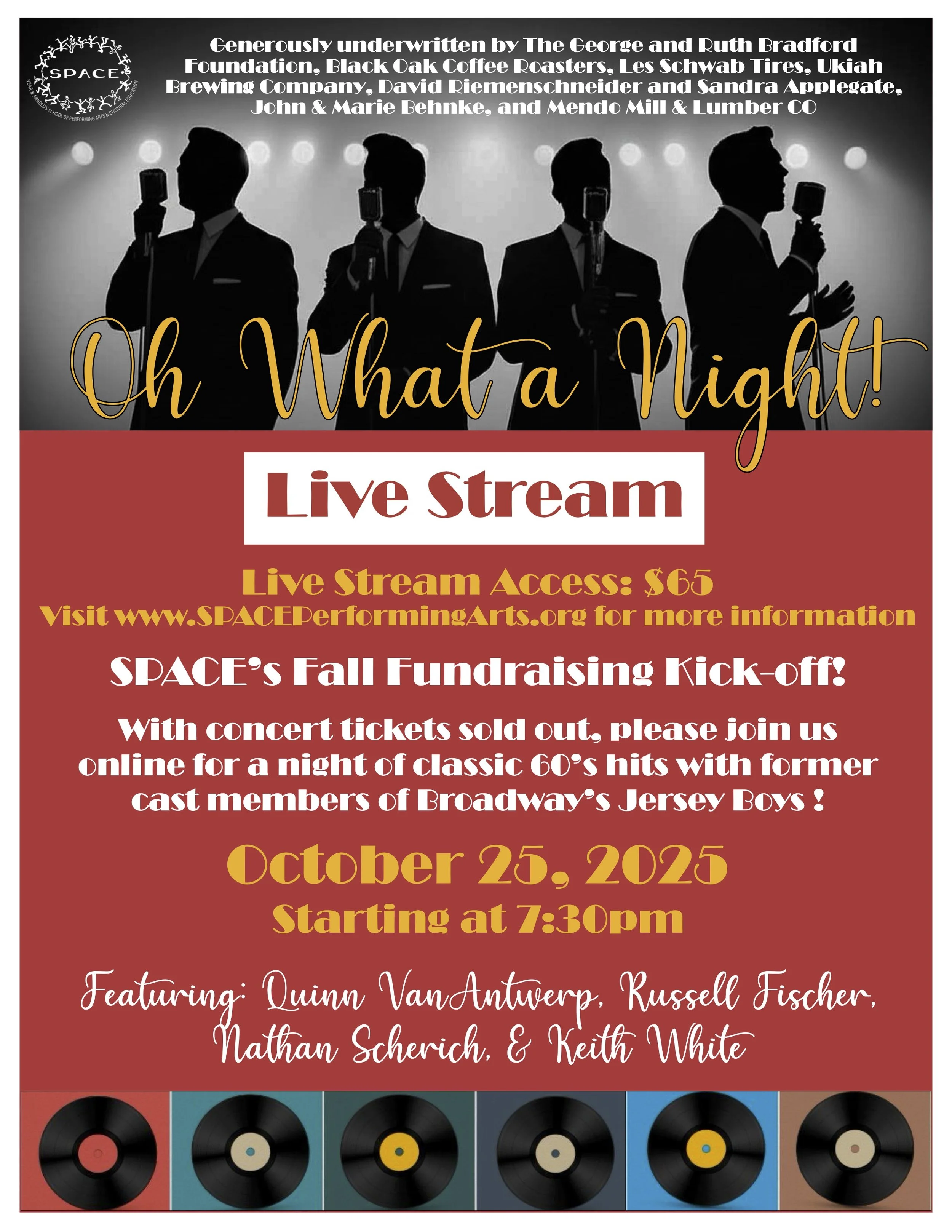 "Oh, What a Night" — Live Stream EventFeaturing Broadway Star Quinn VanAntwerp Join us for SPACE’s Fall Fundraising Kick-Off!